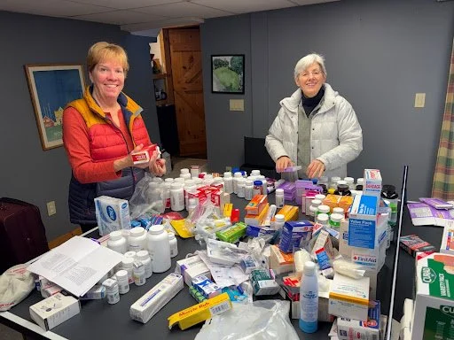 Leslie Pendleton and Dr. Claudia McQueen, Christ Church in Exeter parishioners, sort donated medical supplies for Cuba.